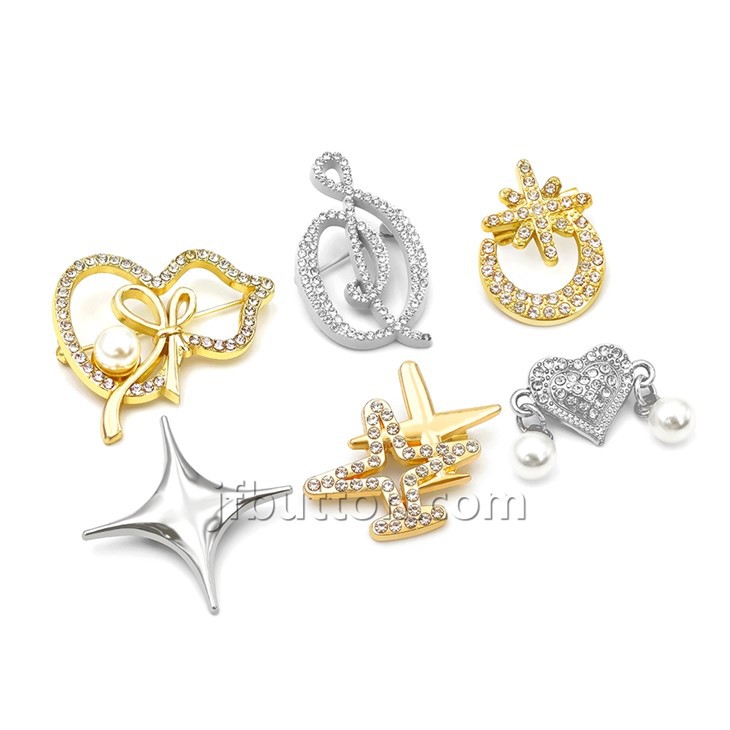Nuestra colección de broches de metal está-mecanizada con precisión para garantizar bordes suaves y un uso cómodo, lo que la hace especialmente adecuada para combinar con telas delicadas. Además, nuestros broches combinan estética y practicidad, a menudo adornados con perlas o pedrería para realzar su estilo y sofisticación general.