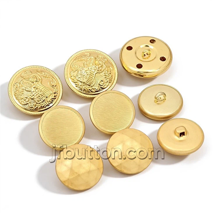Las opciones decorativas para los botones de las mangas de la chaqueta incluyen acabados metálicos lisos clásicos, bordes grabados y motivos en relieve que se alinean con la estética de la chaqueta. Se pueden elegir acabados vintage, antiguos y pulidos según la dirección del estilo, desde estilos tradicionales hasta elegantes y modernos cortes.